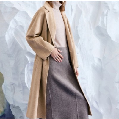 山羊绒翻领通勤简约双排扣大衣外套