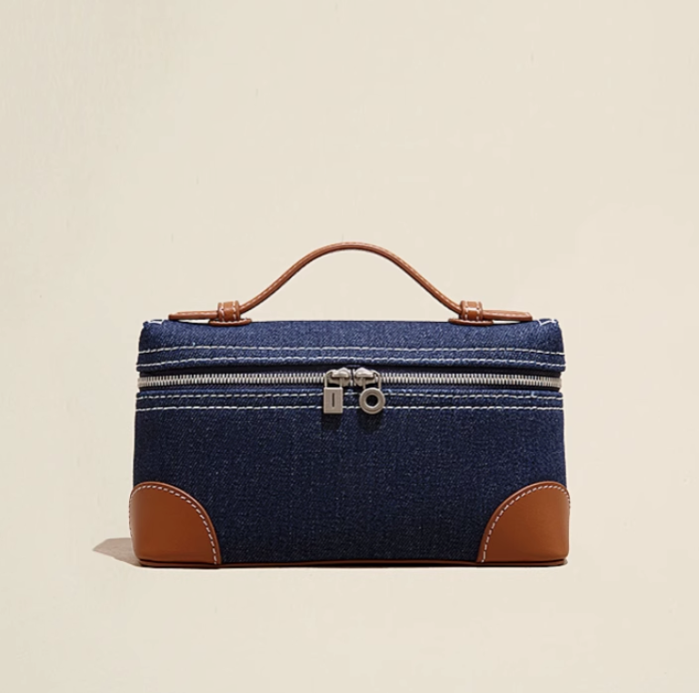 TOUCH MISS法式真皮拼帆布手提饭盒包包女2025新款时尚百搭斜挎包