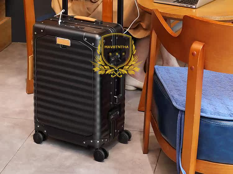 前开仓行李箱万向轮旅行箱铝框拉杆箱宽拉杆登机箱皮箱男女